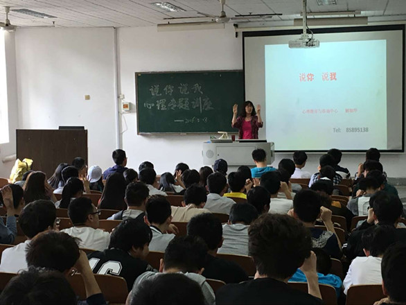5月18日下午两点半,由电子工程学院主办、校心理教育与咨询中心主任解如华老师主讲的专题讲座于主楼112教室举行,学院200多名学生到现场聆听。此次讲座围绕大学生成长之“关注自我,关爱他人”展开,旨在呼吁广大学生重视自己的心理建康,培养自身优良的心理品质;并学会关爱他人,在别人需要帮助的时候及时施以援手。