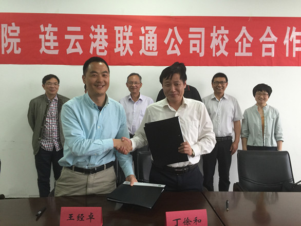 签约仪式由电子工程学院党委书记陶建兴主持,电子工程学院院长王经卓与联通连云港分公司总经理丁徐和代表双方在协议书上签下了承诺——各自漂亮的名字,标志着双方的合作进入实质性阶段。