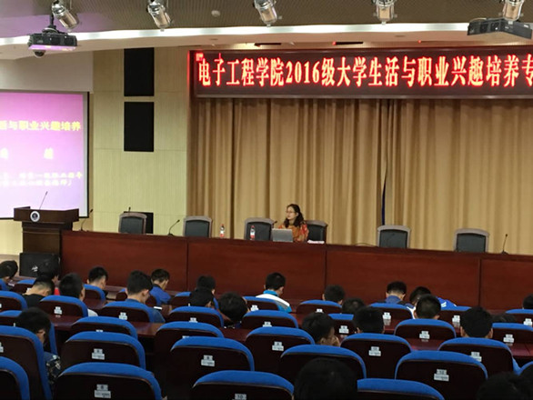 为加强电子学院2016级新生大学生活与职业兴趣培养教育,10月17日下午14时,我院在会议中心黄海厅举办了2016级大学生活与职业兴趣培养专题讲座,此次讲座特邀国家一级职业指导师、国家二级心理咨询师肖莉老师主讲。我院辅导员及2016级新生参加此次讲座。