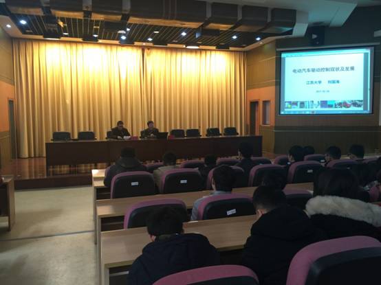 2017年2月24日下午,电子工程学院邀请国家自然科学基金项目会评专家、国内著名电机专家、江苏省一级重点学科“控制科学与工程”博士点带头人、江苏省电动车辆驱动与智能控制重点实验室主任、机械工业新能源车辆电机驱动与控制重点实验室主任、江苏大学电气信息工程学院院长、博士生导师刘国海教授在讲堂楼报告厅为电子工程学院师生作了题为“电动汽车驱动控制现状及发展”的学术报告。报告由电子工程学院副院长掌明教授主持。刘国海教授介绍了电动汽车电驱动电机及控制技术的总体情况、新能源汽车的发展趋势、核心技术。刘教授结合自己的研究成果从目前电动汽车面临急需突破的电池、电控、电机三个核心问题,以及取得的电机重大突破进行了深入的剖析。刘教授治学严谨、科研视角独特,讲解生动,参会的电子工程学院的广大师生受益匪浅。