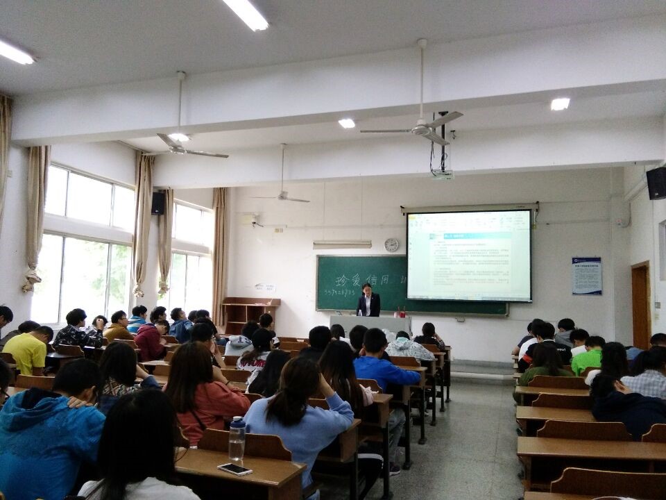 5月24日下午,电子工程学院2018届毕业生诚信教育活动在文通楼113举行。学院邀请中国银行赵晨经理担任主讲,全体2018届助学贷款毕业生以及大一大二部分贷款学生参加了活动,活动由李婷老师主持。