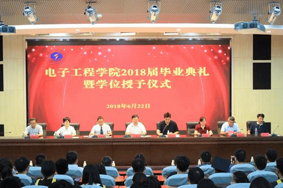 迎着灿烂的朝霞,踏上青春的脚步,6月22日上午,电子工程学院在会议中心黄海厅举行2018届毕业典礼暨学位授予仪式。
