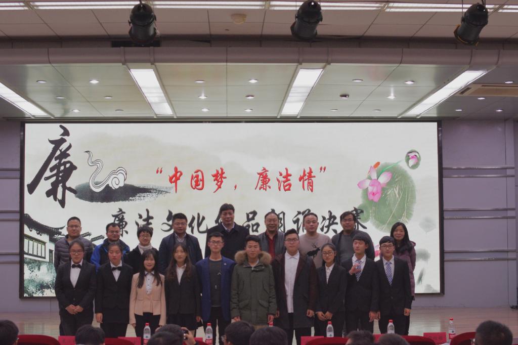 为了响应我校“立德,担当,守规”廉洁主题教育宣传月,11月18日晚7时,电子工程学院举办的“中国情,廉洁梦”主题朗诵比赛决赛,该比赛在苍梧校区艺术楼报告厅顺利举行。出席本次决赛的评委嘉宾有校纪委副书记王吉春,学生工作处处长朱国军,校团委副书记朱小明,电子工程学院党委书记陶建兴,电子工程学院党委副书记钱汉珍以及电子工程学院各辅导员。最终,测控181的田俊龙、吴怡汐、施倩,电科嵌181的金毅,以及电子181的罗燕洋组成的团队获得一等奖。