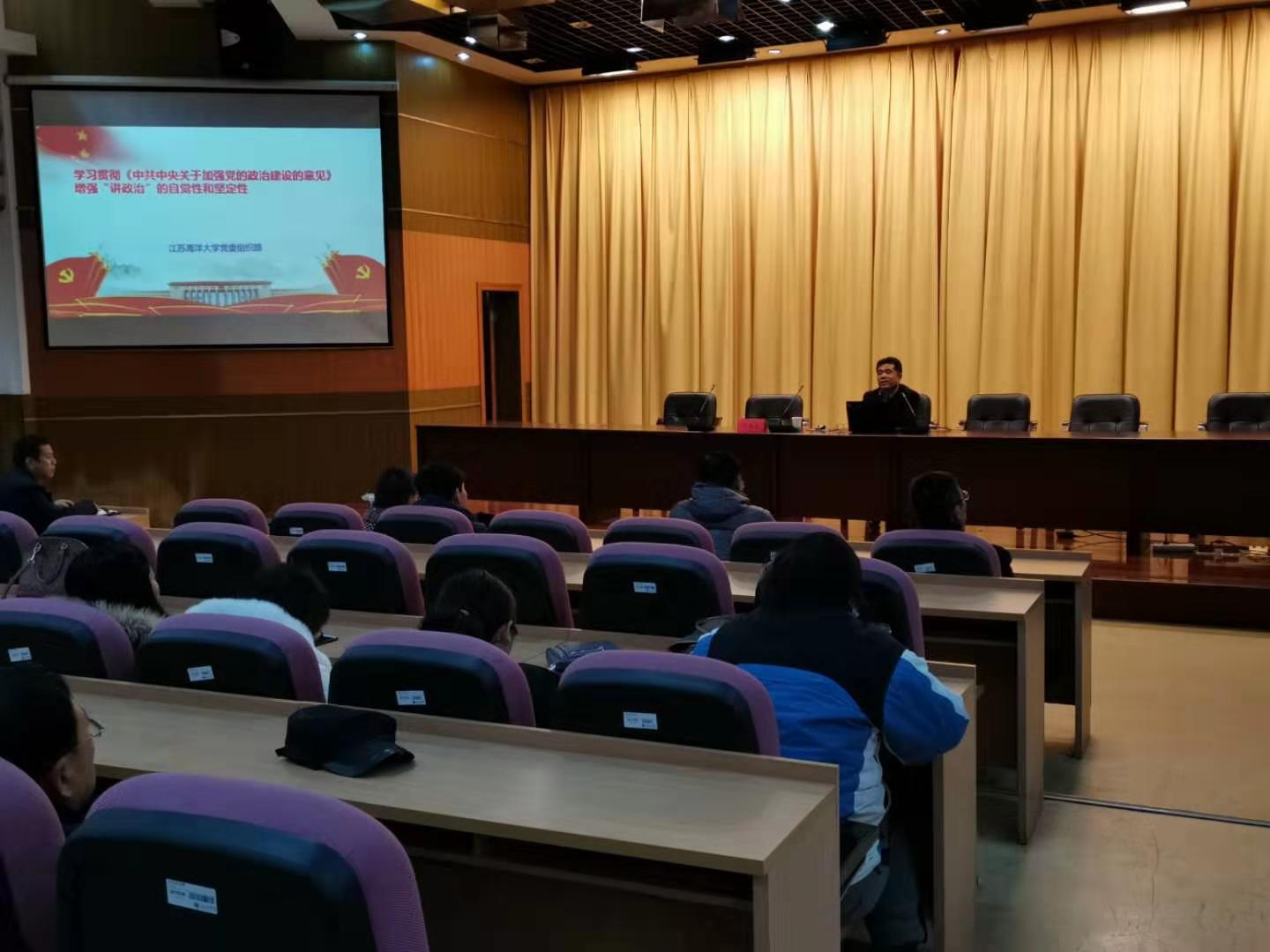 为深入学习贯彻党的十九大精神,引导广大教职工深刻领会党的政治建设的重大意义,12月18日下午,电子工程学院党委、体育学院党委共同邀请校党委常委组织部部长纪延光为全体教职工上了题为“学习贯彻《中共中央关于加强党的政治建设的意见》,增强‘讲政治’的自觉性和坚定性”专题报告,会议由电子工程学院党委书记马志同主持。