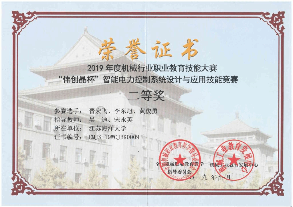 本次大赛分为本科组和高职组,赛项紧贴掌握基础、积极实践的理念,赛项要求在三个小时内完成设备安装与调试、绘制CAD电气原理图、解答与名词解释、电力系统调度与监测软件的运行与操作四项任务,并考察选手的团队合作精神和职业综合素养;我校电子工程学院吴迪博士、宋永英高级实验师指导,由电气工程及其自动化专业的晋宏飞、黄俊勇、李东旭三名同学组成的团队荣获本科组二等奖。这充分展示我校学生在智能电力控制系统设计与应用方面的能力,彰显了我校围绕海洋特色、培养海洋创新应用人才取得的丰硕成果。