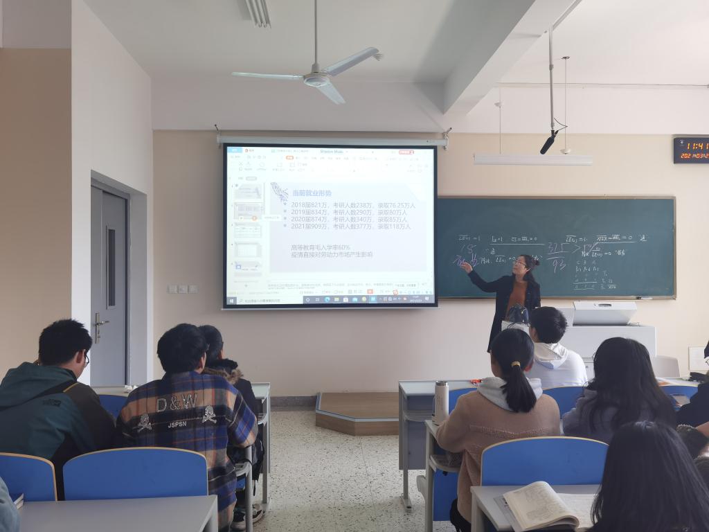 张玲以“躬身如局、奋搏青春”为主题,从高等教育“十四五”规划、近三年应届毕业生总数、全国考研招录人数、疫情影响等就业现实大局,结合学院各专业就业率、就业去向、薪资待遇、考研率等相关数据进行了详细地阐释。她建议同学们本着实事求是的原则分析个人学习能力、专业基础等各方面综合情况,尽快锚定就业目标,长线投入坚持学习,用埋头苦干的精神耕耘出电子人的广阔天地。