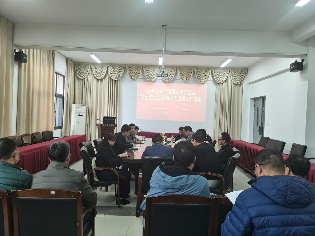 10月25日,学院召开实验室安全工作部署会,党委书记马志同主持会议。会议及时传达江苏省关于加强高校实验室安全工作会议精神,并全面部署安全隐患自查自纠工作。会后由实验中心牵头,迅速行动,立即开展实验室安全风险辨识和隐患排查治理工作。