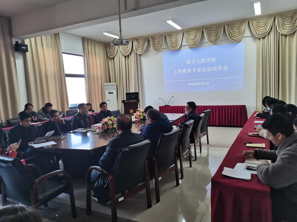 为扎实推进工程教育认证自评阶段工作, 3月2日下午,电子工程学院召开动员推进会。学院党政领导、各系中心主任、全体行政人员、相关教师参加了会议。院长龚成龙主持会议。