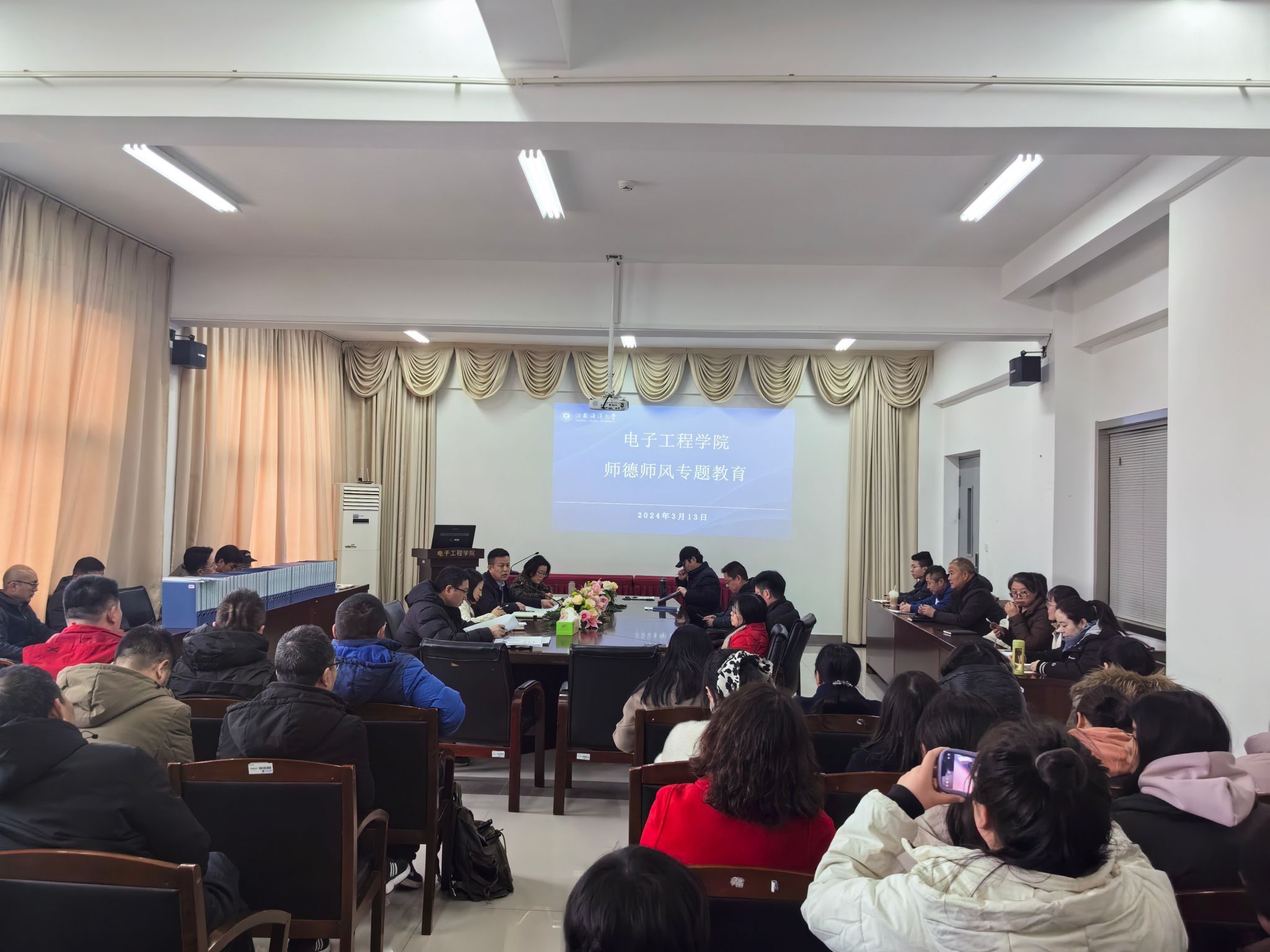 为进一步推进我院师德师风建设工作,打造师德高尚、业务精湛的优秀教师队伍,增强教师的责任感、使命感和荣誉感,3月13日学院召开师德师风教育专题会议,全体教职工参加了会议。