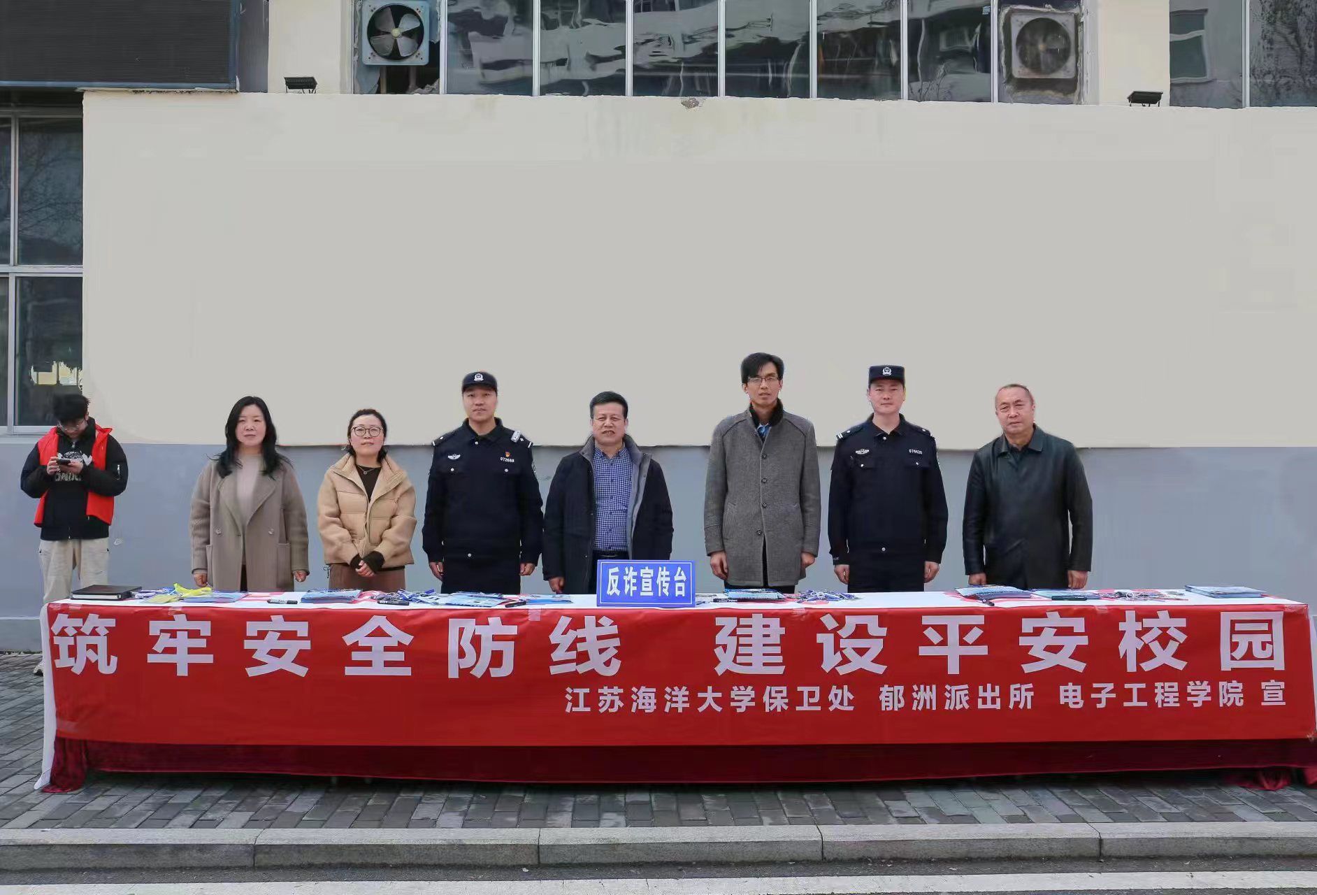 为了迎接第九个全民国家安全教育日的到来,提升师生安全防范意识和处置能力,丰富校园安全文化,扎实推进“本科教育教学审核评估”迎评促建工作,3月28日上午,在学校第一食堂北侧,江苏海洋大学保卫处、郁洲派出所、江苏海洋大学电子工程学院联合启动“4•15全民国家安全日”系列活动,学校保卫处、郁洲派出所、电子工程学院负责人出席了活动。