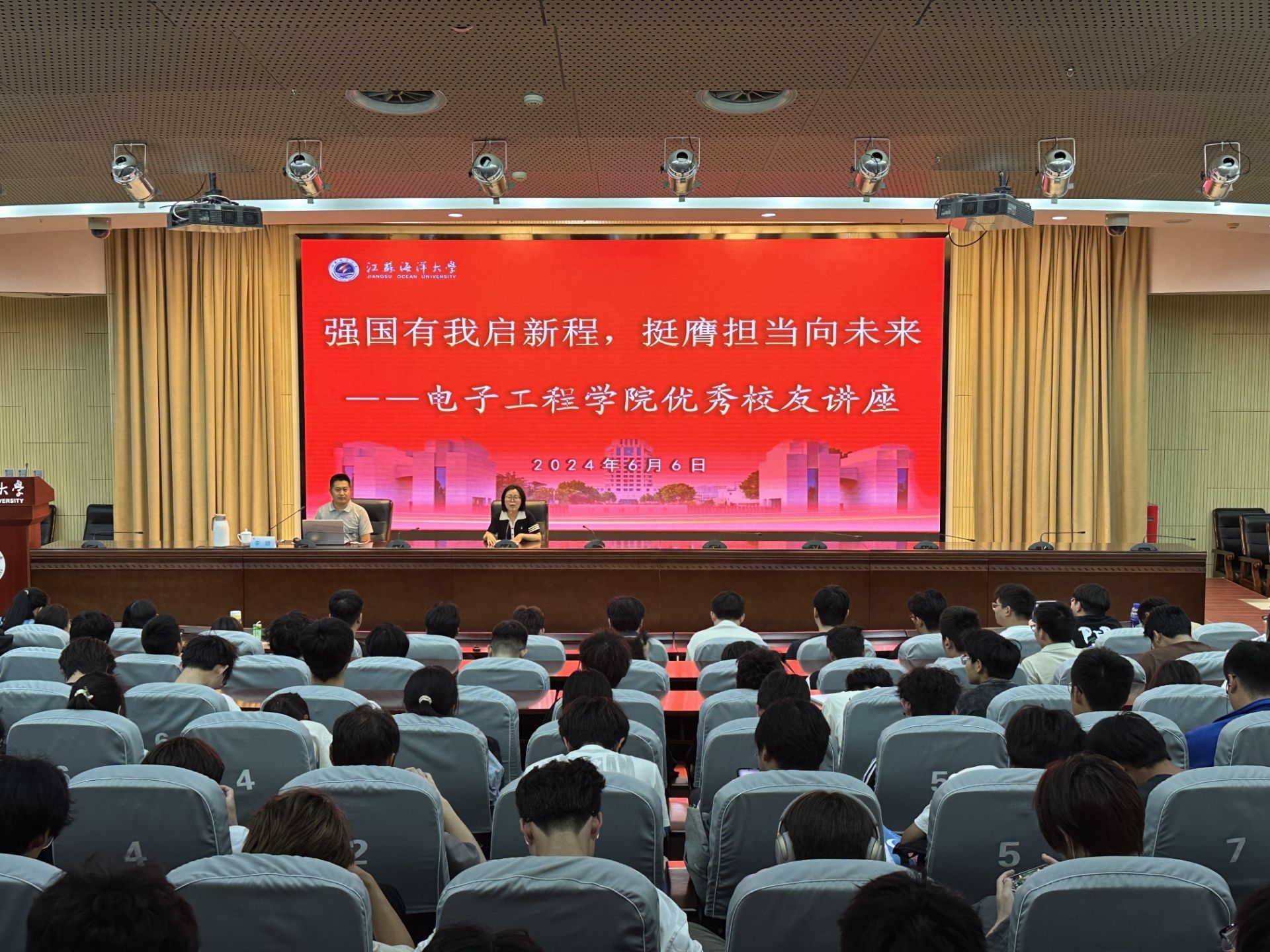 6月6日,电子工程学院“强国有我启新程,挺膺担当向未来”主题报告会在黄海厅举办。电子工程学院2016届优秀校友李晗,学院党委副书记张玲、学工办主任丁小青、团委负责人韩申及200余位学生参加活动。