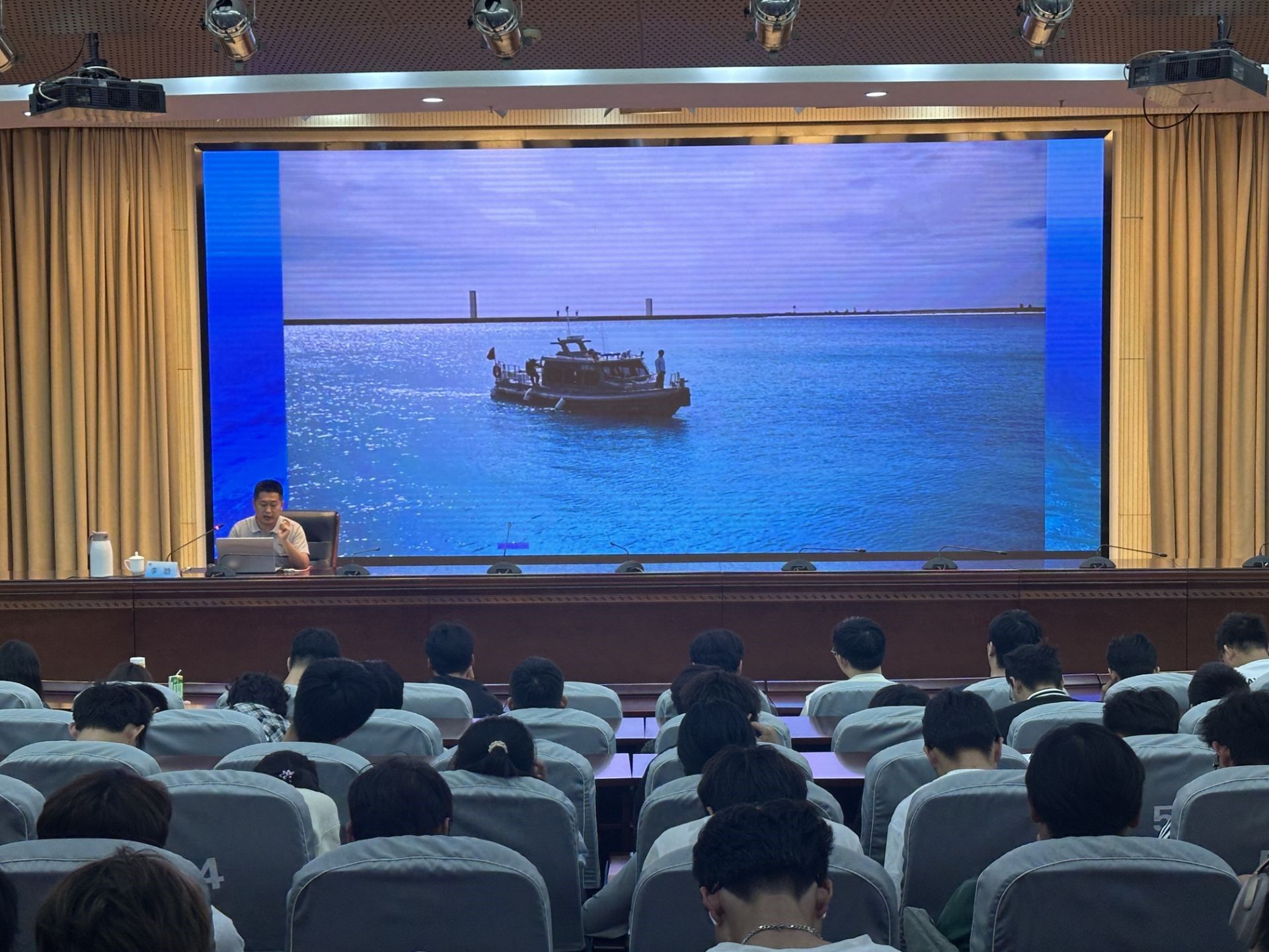 李晗从美丽的南海风光谈起,讲述了老西沙们守岛戍边的英雄故事,年轻人接棒保家卫国的感人事迹,“有困难找晗哥”的实干经历。生动写实的案例情节让大家饱受启发,深受感动,炽热爱国情、至诚报国志感染了在场的每一位同学。