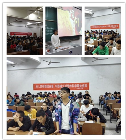 主讲人翁晶晶同学首先为大家讲述了几位中国共产党员为了坚定信仰的光荣事迹,使同学们加强了对革命先辈的认识。随后主讲人通过引入温总理创作的诗歌-《仰望星空》,让大一新生通过学习诗歌深刻体会到了信仰的魅力。此外,主讲人还为同学们详细地讲解了“四进四信”的相关内容,引导并帮助了广大新生树立了正确思想,让同学们在实践、参与中信任、学习、消化,并成为社会主义核心价值观的青年代言人。最后团委副书记于洋同学对本次活动进行了总结,并强调大一新生面对诱惑要努力克服,要坚定自己的信仰。