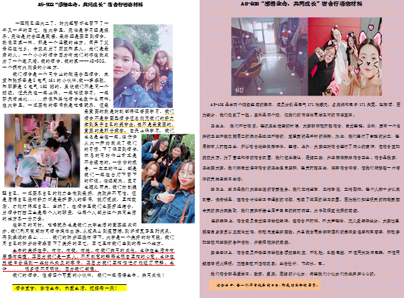 此次参与评选的每个作品都凝聚了参赛宿舍的集体的心血,大家从各自不同角度,讲述了宿舍成员之间团结互助的亲情、友情,分享了当代大学生的青春奋斗的事迹,展现了大学生的良好和谐精神风貌。来自G电气161、2班混合宿舍A5-502的同学说:生命的美好在于,有你,有我,有她,有我们共同的成长,也许在生活中有摩擦有碰撞,正因为我们是一家人,不用刻意的解释也能明白相互的心意。