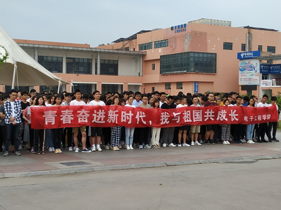 5月27日清晨,电子工程学院在校四食堂前广场顺利举行了“青春奋进新时代,我与祖国共成长”主题升旗仪式。院党委副书记、副院长钱汉珍,全体辅导员、班主任和全院学生参加了升旗仪式。