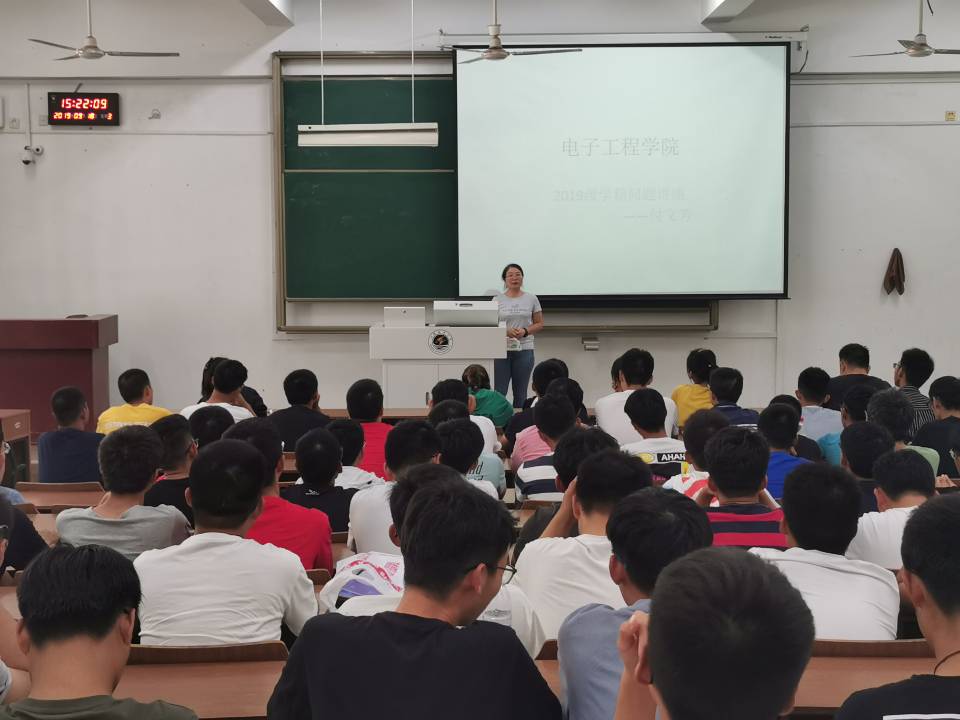 为进一步帮助新生了解大学学业类规章制度,对自己的大学生活进行合理规划,电子工程学院于9月18日14时30分在文通楼c124开展了入学教育之学籍管理专题讲座。此次讲座由电子工程学院教学科研办副主任付文芳老师主讲,电子工程学院辅导员及全体19级新生参与本次讲座。