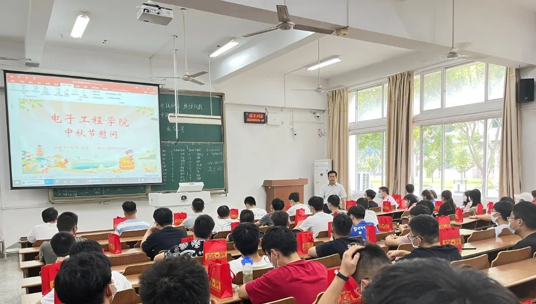 迎中秋,聚E堂。中秋来临之际,电子工程学院党委书记马志同、副书记张玲、各班级班主任、辅导员深入学生宿舍,组织师生见面会、操场户外小游戏,为返校老生及已报到2022级新生送上学院殷切关怀和温暖祝福。