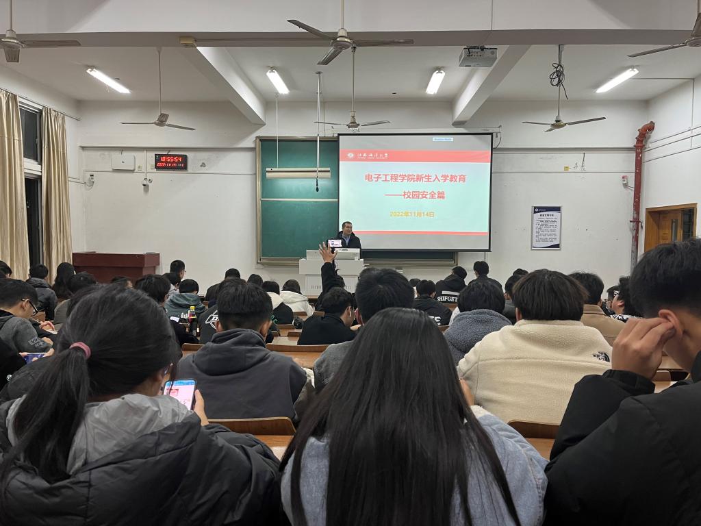 近日,为了提高新生的校园安全意识,筑牢校园安全底线,电子工程学院开展新生入学教育之校园安全主题教育活动,本次活动由穆成银老师主讲,新生通过线上线下的方式参与会议。