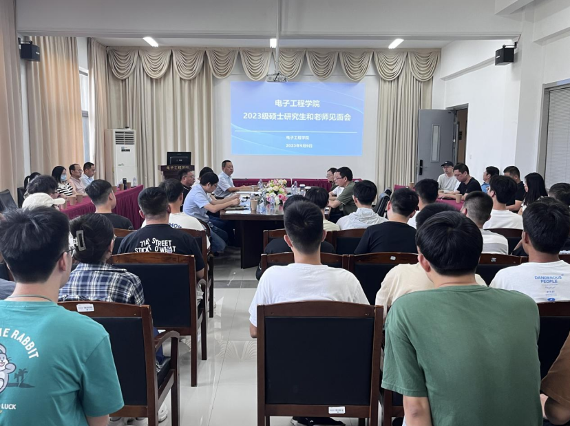 2023年9月9日上午,电子工程学院在电子楼314会议室召开2023级硕士研究生和老师见面会。学院党政领导、校外导师代表日出东方控股股份有限公司副总裁、总工程师焦青太、中国电信连云港分公司网络操作维护中心主任陈素春、连云港杰瑞自动化有限公司智能装备事业部副部长卞绍顺、连云港杰瑞自动化有限公司综合管理部主任田旭、校内研究生导师、研究生辅导员、教学办老师和2023级全体硕士研究生参加会议。