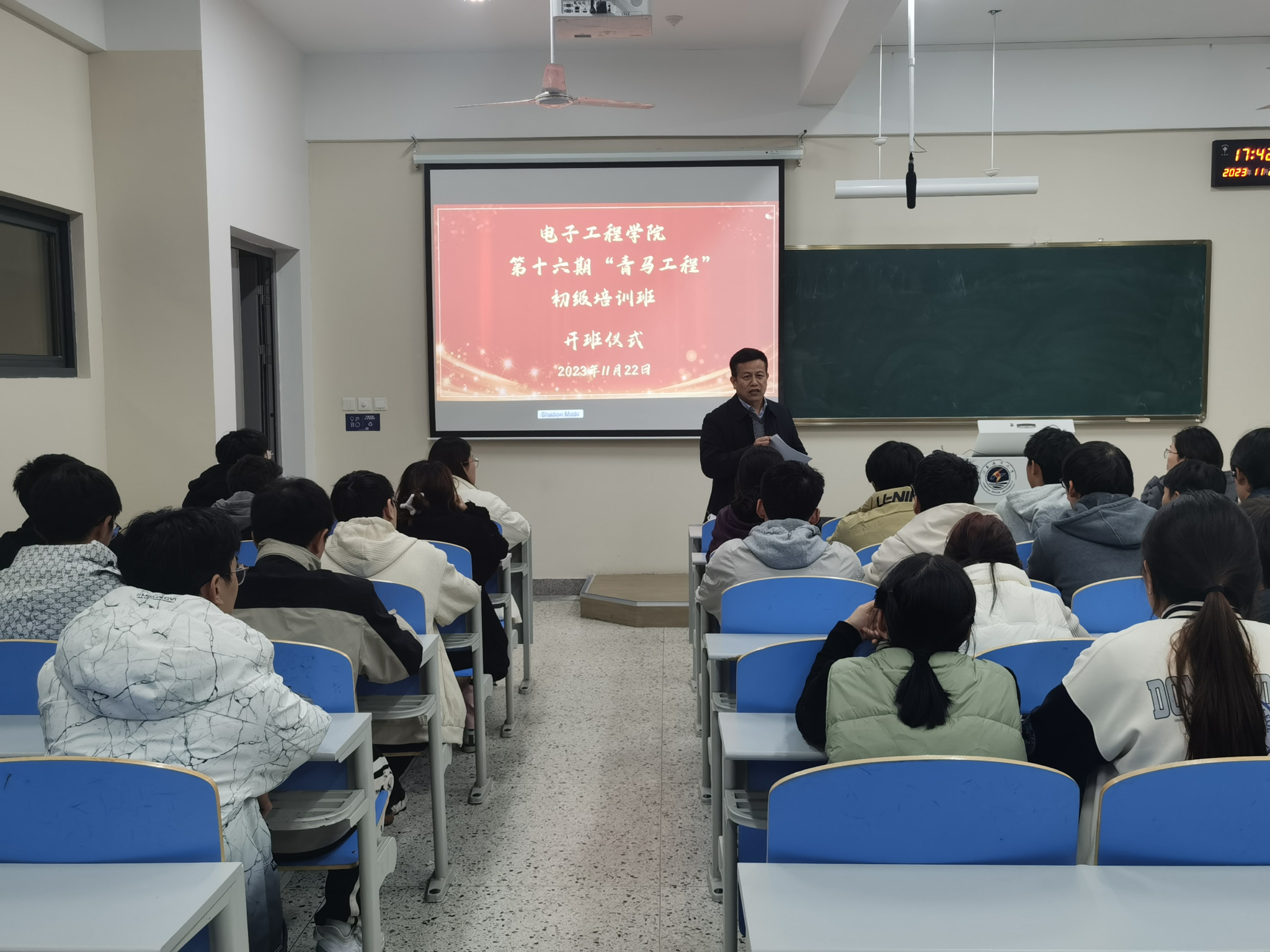 11月22日下午,电子工程学院第十六期“青马工程”初级培训班开班仪式在文华304举行,学院党委书记马志同、党委副书记张玲、团委负责人韩申、“青马工程”初级培训班全体学员参加。