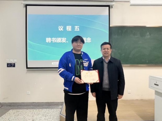 学院党委书记马志同、副院长杨淼、党委副书记张玲为社团发起人、各专业赛事代表颁发聘书并合影留念。