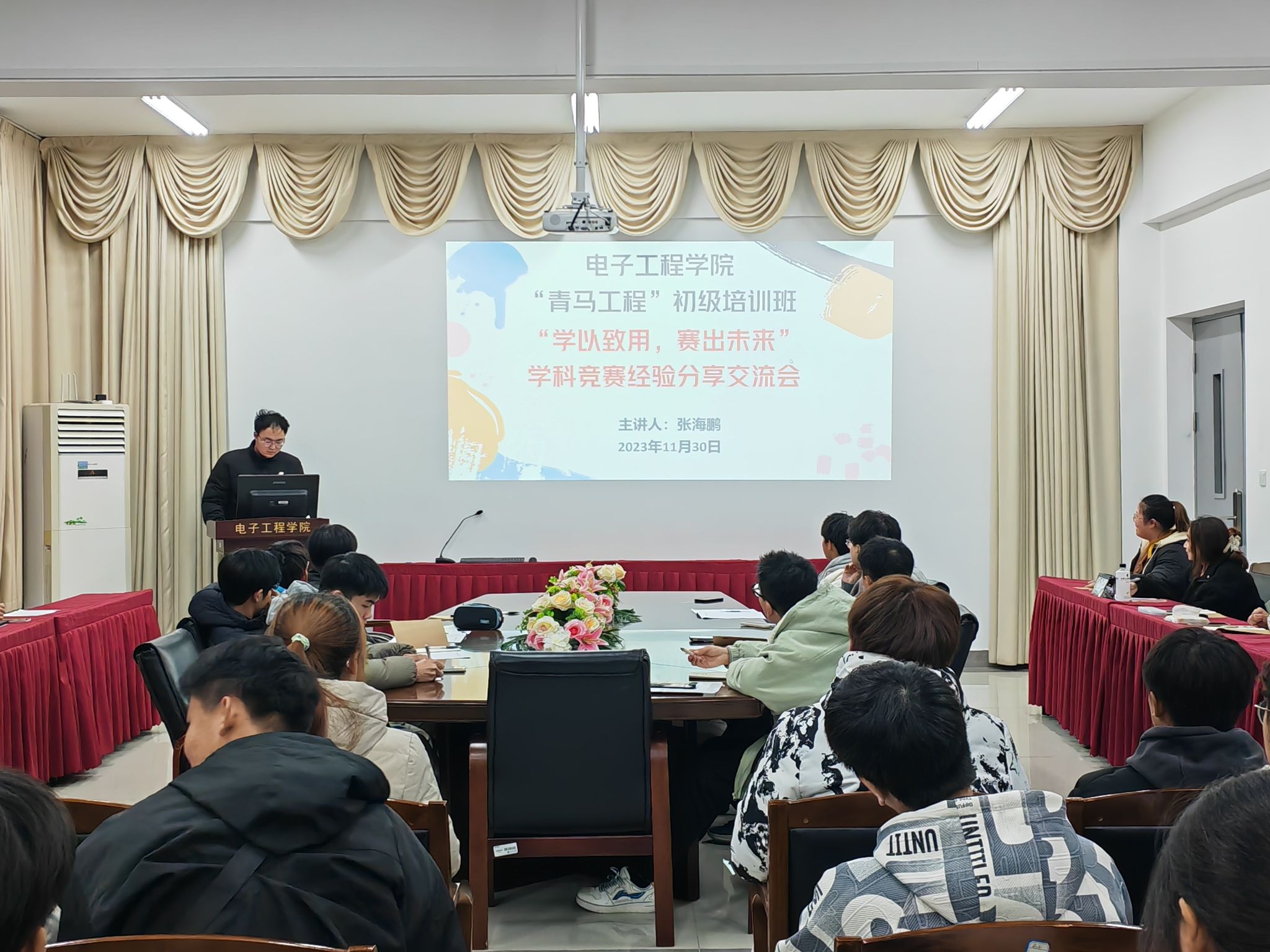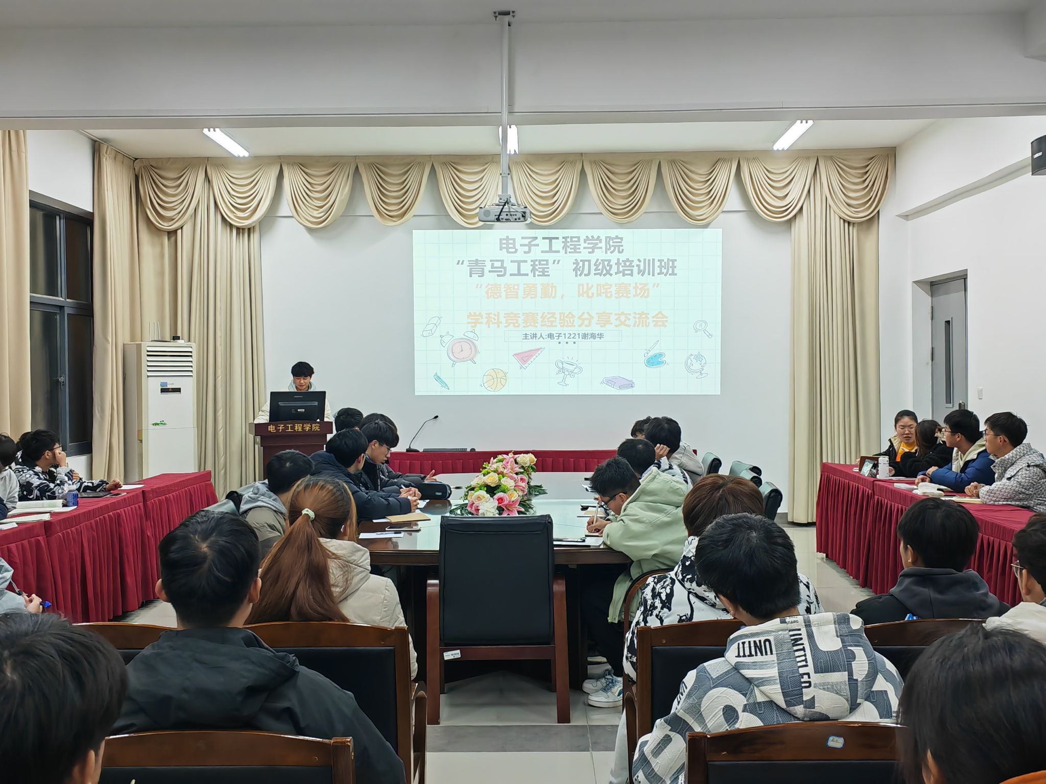 11月30日晚上,电子工程学院开展第十六期“青马工程”初级培训班“学科竞赛”经验分享会,团委学生副书记朱颖主持,全体学员参加。