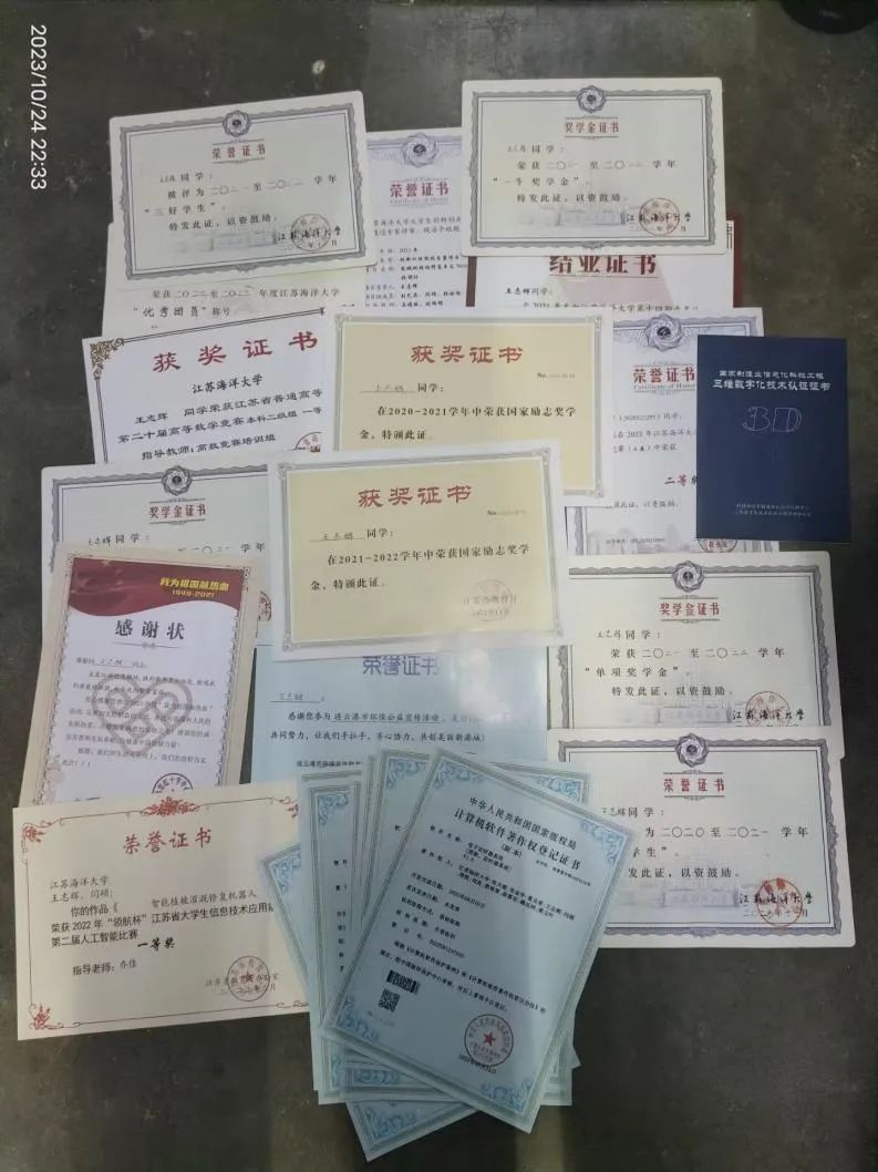 王志辉,男,中共预备党员,自动化201班长,学习成绩连续三年专业第一,曾获校一等奖学金(连续三次),校三好学生,校优秀团员,2022-2023学年校三好学生标兵。在竞赛中获得江苏省高数竞赛省一等奖,蓝桥杯省三等奖,“领航杯”暨江苏省第二届人工智能大赛省一等奖,拥有9个软件著作权。