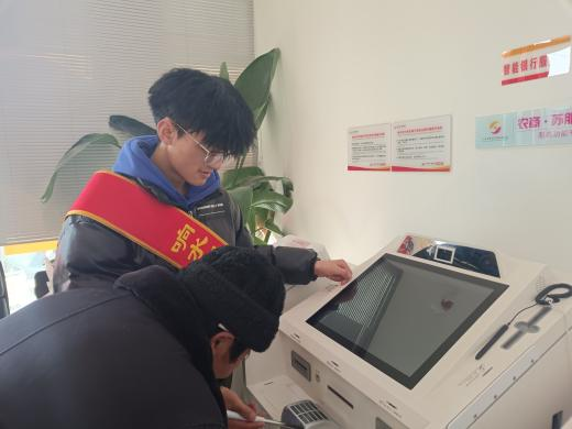 电气1231高峥杰同学(上图)、电气1232胡继超同学(下图)不约而同,分别报名参加了家乡银行的大学生志愿者服务活动,协助大堂人员工作,引导老年人在自助柜员机完成存取款,社保卡激活、密码重置,养老保险缴费等业务。实践结束后,高峥杰说道:“此次为期一个月的志愿活动,是我作为大一新生第一次与社会的真实接触,极大地增强了我的表达能力,锻炼了仔细倾听他人与处理突发事件的能力。”胡继超说道:“由于老人不太会使用智能手机,他们往往选择来银行办理业务,在我的帮助下,他们能够很顺利地完成操作,我感到非常开心。”