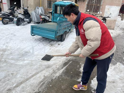 自动化1232王源同学报名参加假期社区志愿服务活动,参与社区管理,协助社区工作人员出墙报、清洁楼道、清理绿化带垃圾、铲雪除冰、清洁宣传栏玻璃。服务结束后,他说道:“通过开展丰富多彩的社区服务活动,我进一步了解了社会,开阔了视野,增长了才干,并在活动中发现了自己的不足,这在无形中使我对自己有一个正确的定位,增强了我努力学习的信心和毅力。”