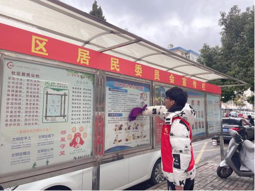 通信1221谢润峰同学积极参与社区服务,迎“寒”而上,开展铲雪除冰志愿服务;铲除社区各处小广告,向居民们宣传环保知识,呼吁大家共同参与到环境整治中。服务结束后,他说道:“每个人之于社会的价值,不仅仅在于创造了多少物质财富,同时也在于为社会创造了多少精神财富。在付出爱心、奉献社会的同时,人生的价值就会得到充分彰显。”