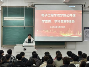 3月22日,学院开展“学雷锋,学科竞赛E辅导”梦想公开课,“E之梦”电子创星协会会长陈振洋担任主讲人,全体团学组织学生骨干参加。陈振洋系统梳理了各类学科竞赛,结合社团活动,为同学们分享竞赛心得。
