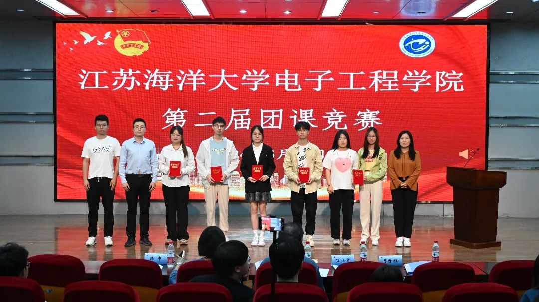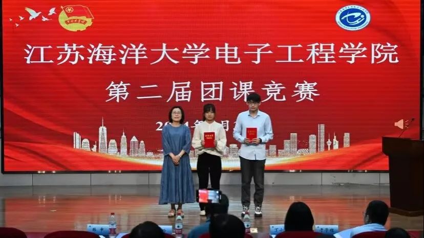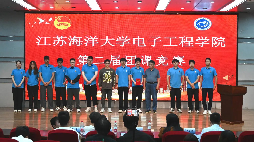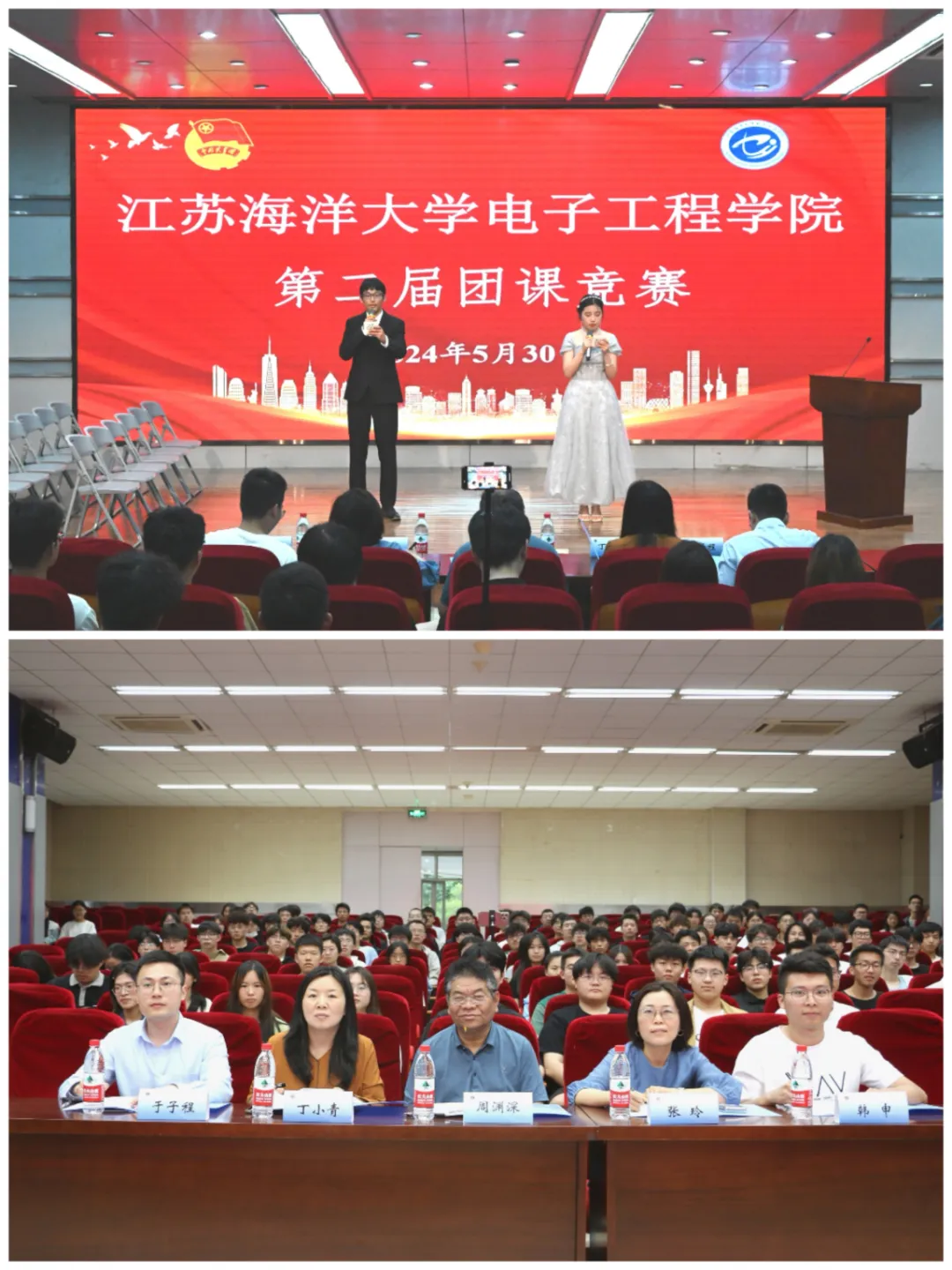 2024年5月30日晚,电子工程学院于艺术楼报告厅举办以“科技创新——争当科创主力军”为主题的第二届团课竞赛,学院关工委副主任周渊深、党委副书记张玲、学工办主任丁小青、团委负责人韩申、辅导员于子程担任评委,2022级团支部参赛,2023级同学观摩。