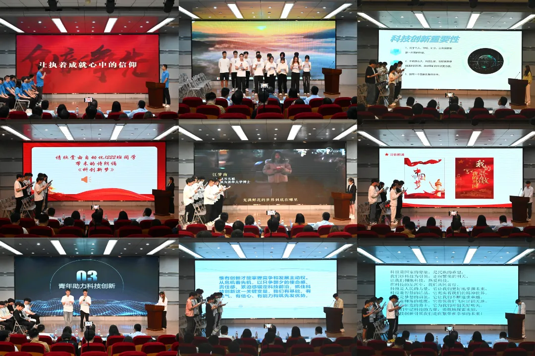 各团支部按照抽签顺序依次上台展示,以PPT宣讲为主,结合合唱、朗诵、互动、演讲、学科竞赛分享等形式,给在场评委和观众带来一场关于科技创新的团课盛宴。活动最后,由周渊深教授进行总结与点评,主持人宣布获奖情况并进行颁奖合影。