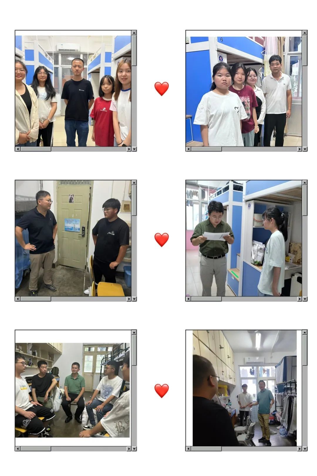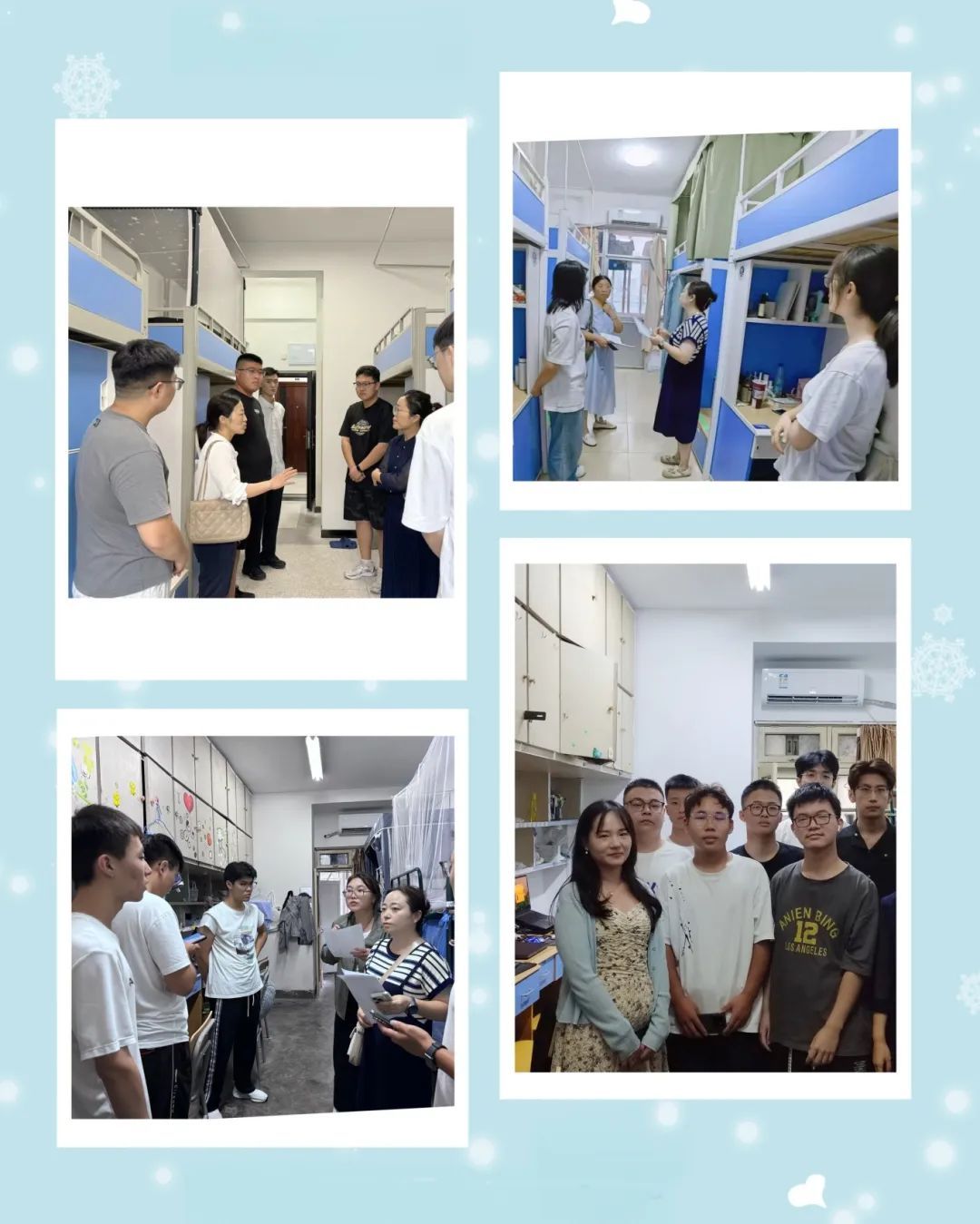 在看望新生过程中,学院领导、老师们与新生亲切交流,详细询问报道旅程、住宿适应、饮食习惯、学习准备、未来构想等方面的情况,热情解答新生提出的各种疑问,积极帮助新生解决遇到的困难。老师们叮嘱同学们要提高防范意识,保证人身和财产安全,保持好宿舍卫生,和宿舍成员友爱相处。同学们纷纷表示,老师们的真情到访,让他们感受到了家的温暖,对将来在学院的学习和生活充满了期待和信心。