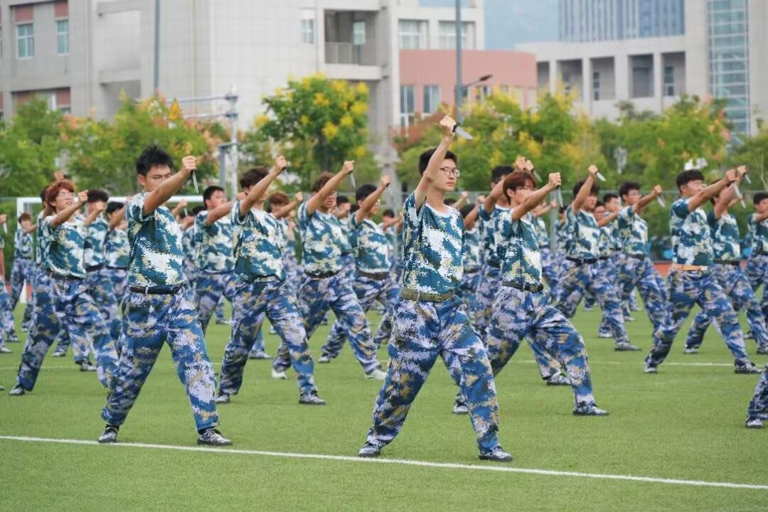 少年的足音回响在九月的校园青春的汗水挥洒在宽阔的操场国旗的红、迷彩的蓝交织出2024级新生军训的难忘经历