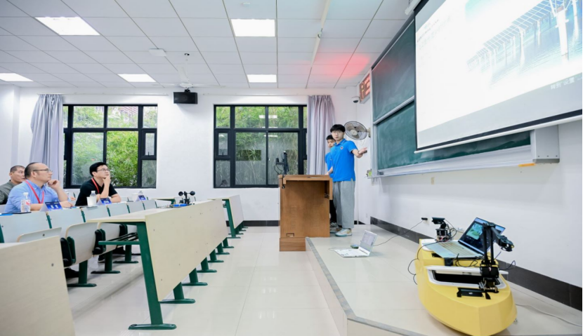 本次大赛分智慧渔业技术分会场、智慧渔业装备分会场和智慧渔业系统分会场,来自全国28家单位的56支队伍参加了本次大赛。参加单位来自浙江大学、中国农业大学、中国海洋大学、大连理工大学、华中农业大学、哈尔滨工程大学、南京农业大学、上海海洋大学、江苏海洋大学、中国科学院海洋研究所、中国科学院水生生物研究所、中国水产科学研究院东海水产研究所等28家高校、科研院所和企业。其中,我院苏瑞阳、潘灿两位学生负责的“渔光互补水面水下无人船监测系统”项目参加了比赛,两位同学准备充分,自信满满地展示自己的作品。