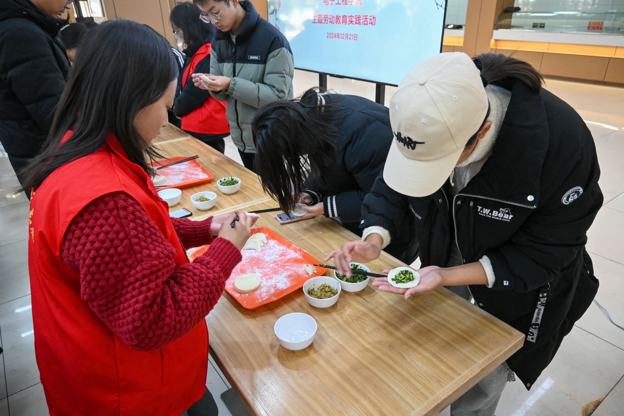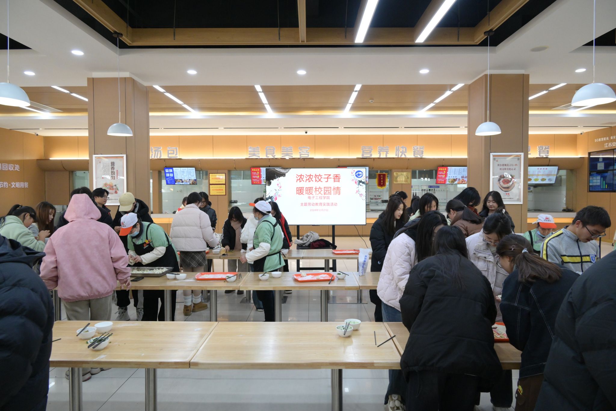 12月21日下午,我院在第二食堂开展“浓浓饺子香 暖暖校园情”主题劳动教育实践活动,各年级学生、全体青马班学员共300余人参加。