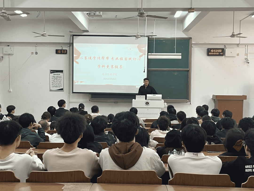 3月26日,学院举办学科竞赛辅导会,“E之梦”电子创星协会会长李维硕担任主讲人,结合2024年协会成员参赛情况、2025年工作计划,系统梳理了各类学科竞赛参赛指南,并为同学们分享竞赛心得。