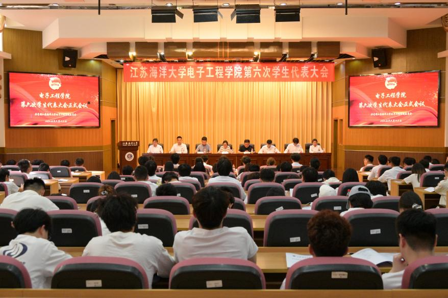 6月12日下午,江苏海洋大学电子工程学院第六次学生代表大会在文博楼报告厅举行。电子工程学院党委副书记张玲,海洋技术与测绘学院团委负责人纪成,电子工程学院团委负责人韩申、辅导员吴林松,计算机工程学院学生会主席李俊杰,商学院学生会主席杨鑫,电子工程学院学生会主席郭聪宇、王焱,团委学生副书记霍冠臣、王诗涵以及电子工程学院全体学生代表齐聚一堂,共商学院学生工作发展大计。