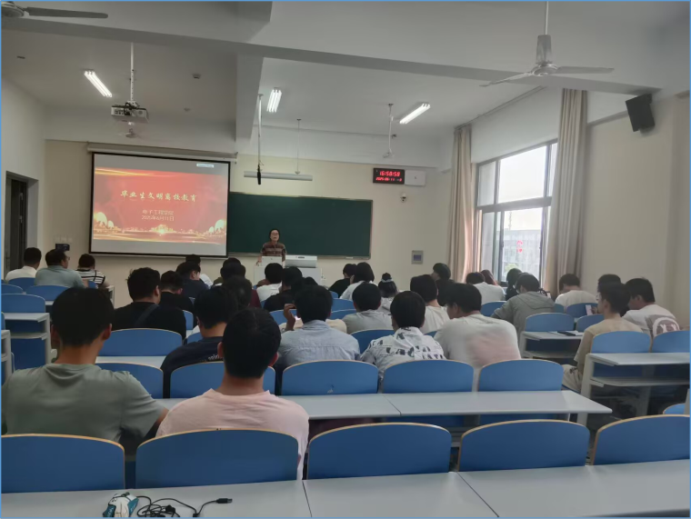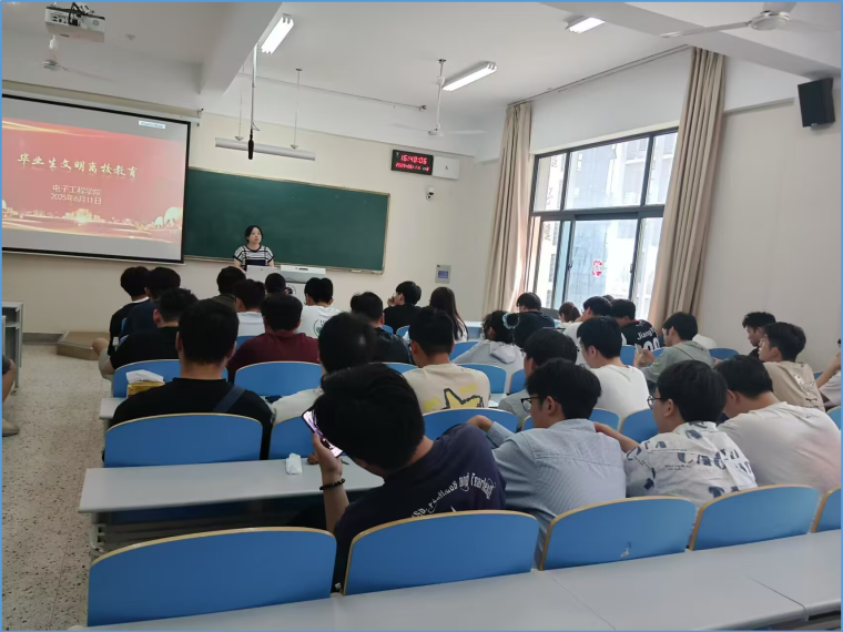 为进一步做好毕业生的思想引领和价值引导,确保毕业生安全、文明、有序离校,电子工程学院于6月11日在文华楼304召开毕业生文明离校安全教育大会。电子工程学院党委副书记张玲,全体辅导员和2025届毕业生学生干部参加。