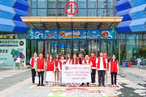 当日下午4时,成员们身着红马甲,携带横幅与队旗前往万达商圈发放宣传单,正式拉开实践活动序幕。