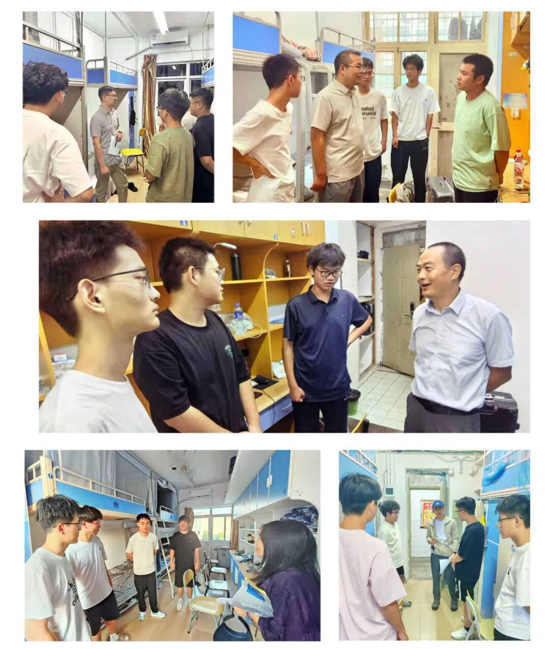 走进B3、B4、B5、A2宿舍楼,学院领导、老师们从家乡所在地、生活起居、饮食习惯、宿舍环境等方面细致询问情况,逐一解答新生们入学后的疑问,并围绕专业学习与成长规划给予暖心建议。同学们纷纷表达对大学生活的美好憧憬,分享初入校园的感受。老师们反复叮嘱,让大家一定要提高安全防范意识,养成良好的学习生活习惯,和室友互帮互助、友爱相处,共同建设和谐、美丽的宿舍小家园。