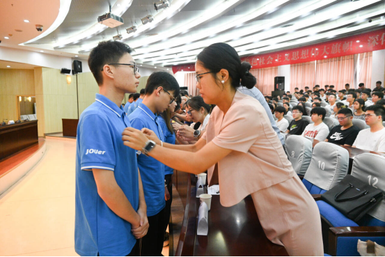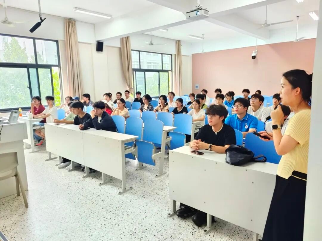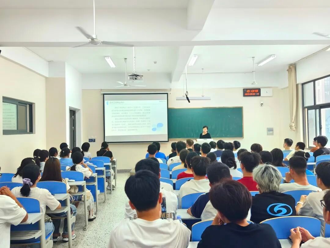 见面会现场,教师代表为新生代表一一佩戴院徽,并送上真挚地祝福。随着《蔚蓝的信仰》校歌响起,2025级新生和老师见面会圆满结束。会后,全体新生参加专业教育,各系主任详细介绍了专业的师资力量、课程体系、发展方向以及未来的就业前景,并就同学们关心的学习问题进行了深入浅出的讲解。