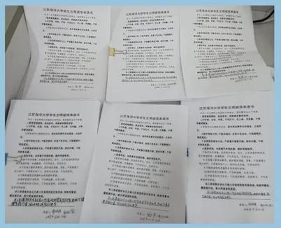 文明诚信讲座最后,动员全体大一新生仔细阅读并现场签署了《江苏海洋大学学生文明诚信承诺书》,共签署承诺书350份。