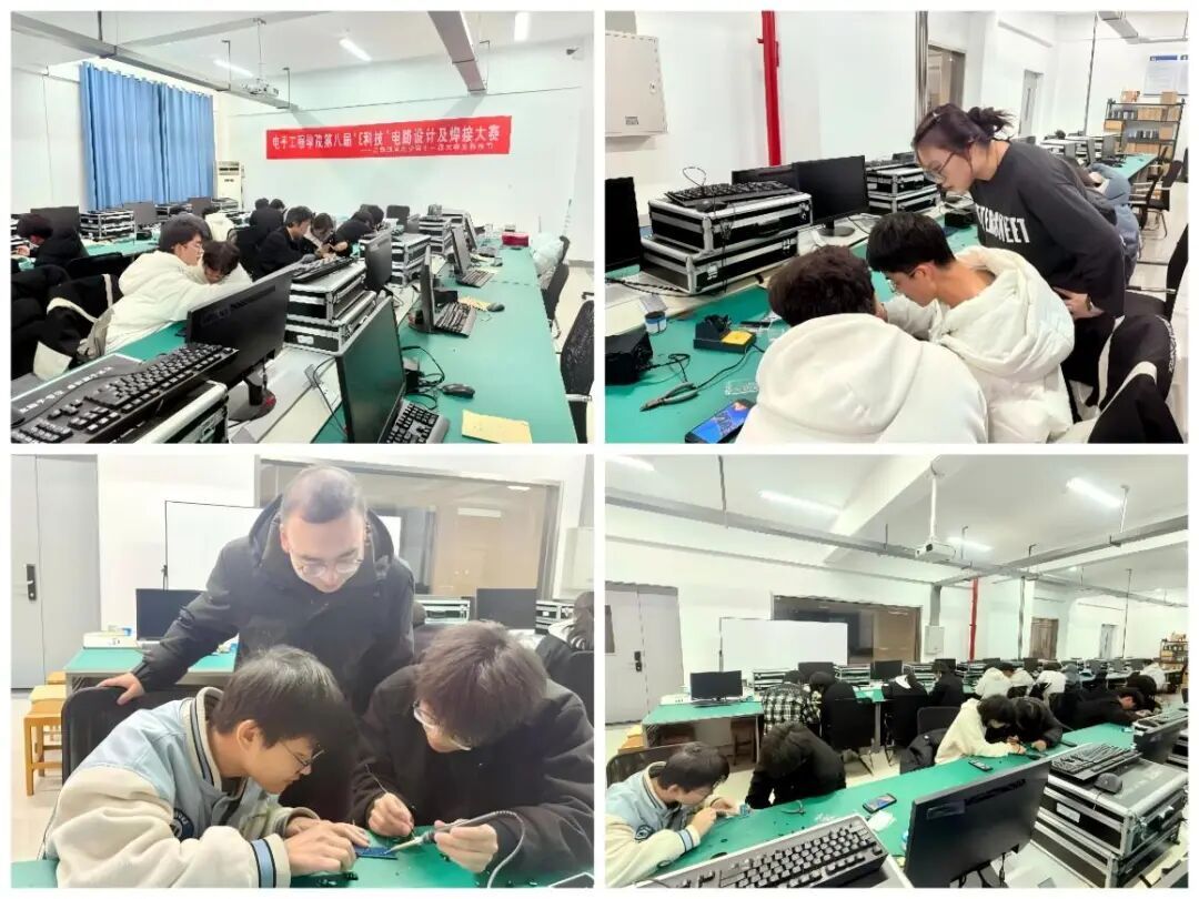 近日,电子工程学院举办科技节系列活动之“E科技”电路设计及焊接大赛。11月26日初赛结束后,共有14名同学晋级复赛。12月1日,复赛在电子楼202实验室举办,冯琪景、范太然老师担任评委。