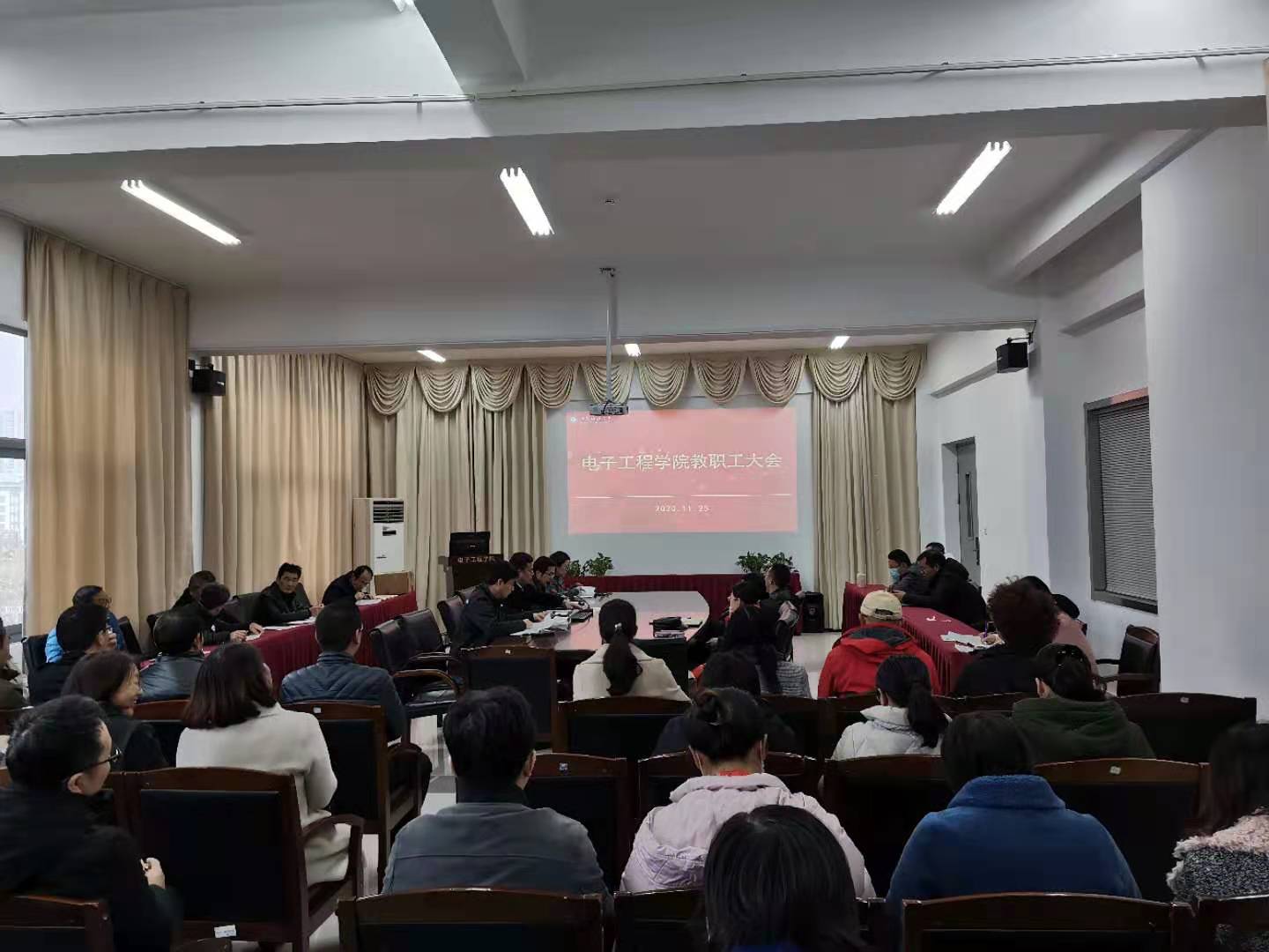 11月25日下午,电子工程学院召开教职工大会传达学习十九届五中全会精神,院党委书记马志同主持,全体教职工参加。