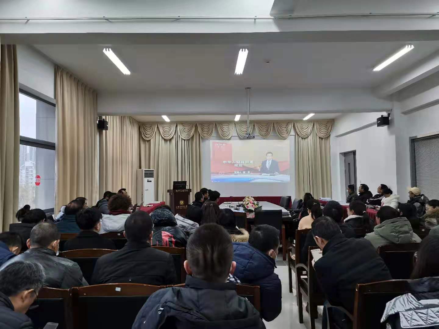 本次学习会围绕三个主题展开。第一阶段,马志同原文传达《教育部办公厅关于组织全体教师观看大型电视纪录片〈为了和平〉的通知》精神,并组织全体教职工集中观看该纪录片。会议要求全体教职工要丰富课程思政内容,把弘扬伟大抗美援朝精神融入课堂教学;全体班主任、辅导员要多形式开展学习教育,引导学生铭记历史,奋斗未来。本次观看对深入开展“四史”教育、加强新时代爱国主义教育具有重要意义。