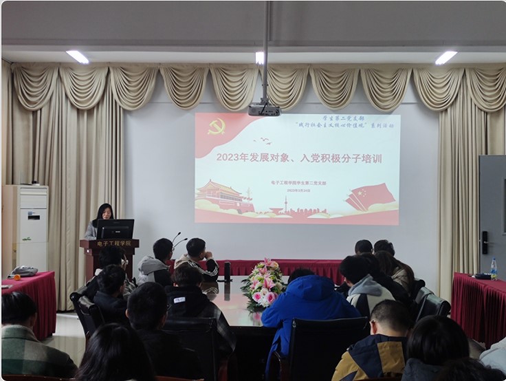 为了引导发展对象、入党积极分子培育和践行社会主义核心价值观,从思想和行为两个方面严格要求自己,争取早日加入党组织,3月25日下午,电子工程学院学生第二党支部在电子楼314举办“新时代如何践行社会主义核心价值观”入党积极分子学习教育专题培训。此次活动由学生第二党支部书记丁小青老师主持,2021级和2020级入党积极分子参加。