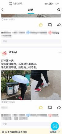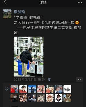 为发扬雷锋精神,动员和引导更多学生投身志愿服务活动,电子工程学院学生第二党支部推出“彩虹21•党员服务意识提升计划”,以21天为周期,全体党员日行一善,并在QQ空间或微信朋友圈发布“打卡签到”,力求“聚民心、暖人心、筑同心”,增强凝聚力,扩大辐射力,帮助学生养成多做善事好事的习惯,积小善成大德。