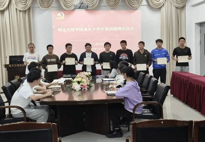为引领全院学生提升国防素养、增强爱国情感、强化责任担当,营造高校爱国爱党拥军良好氛围,充分发挥退役大学生士兵在高校国防教育中的引领示范和模范带头作用,电子工程学院学生第二党支部结合新时代国防教育新要求,擦亮“党建+国防教育”特色品牌,从在校生中遴选出9位优秀退役大学生,组建了2023-2024学年学生“国防教育”小组,鼓励他们在国防教育、征兵宣传、志愿服务、班级管理、疫情防控、体育锻炼等方面发挥示范带头作用。10月13日下午,电子工程学院学生第二党支部在电子楼314会议室举行了聘任仪式,全体党员参加活动。